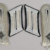 Well used insignia set to a Infantry Oberleutnant. Sew-on shoulder boards constructed of dull russian braid on white wool backing. One alloy metal pip, pinned in place to each board. The fully matching pair shows clear signs of age and use.