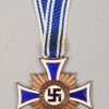 This is the second model with blue and white enamel. Reverse and center in bronze. Institution date and a facsimile of Adolf Hitler’s signature on the reverse. The cross comes with it’s original shortened ribbon. The cross is in good condition with intact enamel and shows a nice age patina.