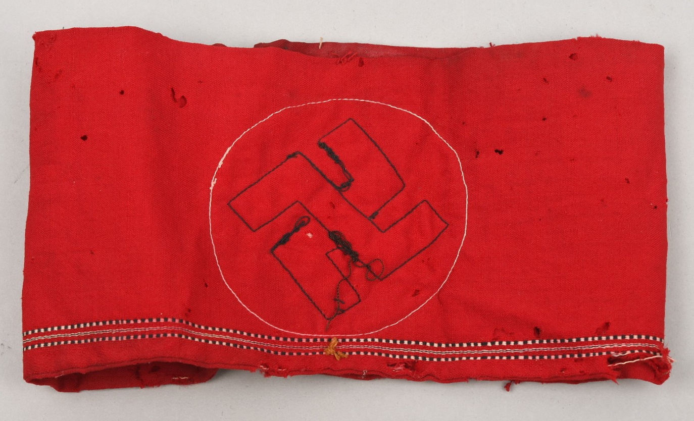 Home > Shop > Product More images Item Id: IO25015 Early NSDAP Armband €40.00 Early woolen multi piece construction. Made of red cotton with white cotton disc and black multi-piece swastika. Clear signs of use and age with several smaller holes, see pictures. Early well used example with clear signs of age and real use! Related products Kriegsmarine Coastal Artillery EM/NCO's Collar Tabs €95.00 Buy now New Heer EM/NCO's M44 Breast Eagle €60.00 Buy now New Luftwaffe Flight/Paratrooper Feldwebel's Fliegerbluse with NARVIK Shield and Kreta Cuff Band €2,395.00 Sold New Heer Jäger's Sleeve Insignia €50.00 Sold New