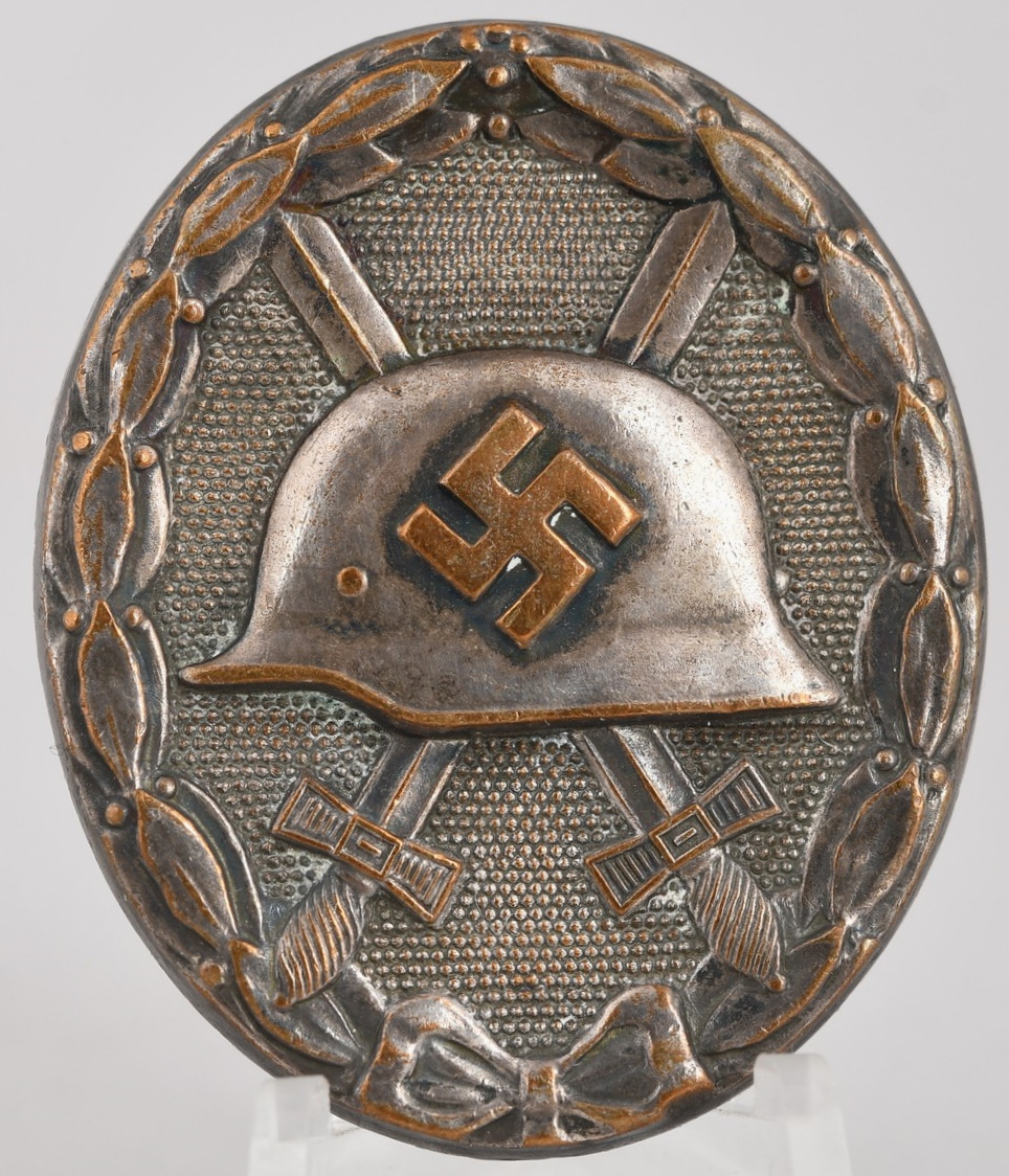 On May 22nd 1939 Adolf Hitler reinstituted a slightly modified version of the wound badge with the addition of a swastika to the WWI pattern badge for award to German volunteers who had been wounded supporting the Spanish Nationalist in the Spanish Civil War. (July 1936-March 1939). With the outbreak of WWII on September 1st 1939, Hitler once again re-instituted another slightly modified version of the wound badge by altering the WWI pattern helmet on the badge to the newly designed M35 style helmet. The black wound badge was the lowest of the three classes and was awarded for one or two wounds.