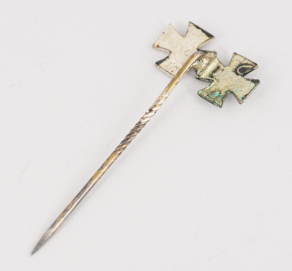High quality, private purchase stick pin with Iron Cross 1’st and 2’nd Class. Iron crosses is the overlapping eachother. The crosses is about 9mm. Black paint intact to 90+ % and the soldered correctly knurled stick pin is still intact. In overall very good condition with light signs of age / use.