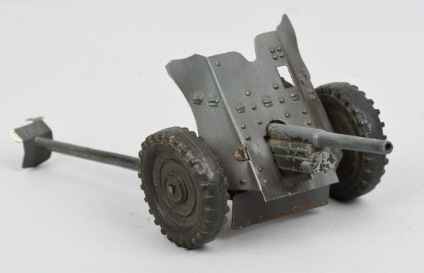 Late 1930’s or Early 1940, produced by the Company “Hausser”. PAK-36 toy made of sheet metall with field-grey paint in good condition with some paint wear and light surface rust. All parts intact and functional spring.