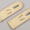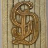 Constructed of white wool with dull russian braid. Pinned in place to each board is a gilt ferrous metal “GD” monogram cypher pinned in place. The perfect matching pair show clear signs of age and real use.