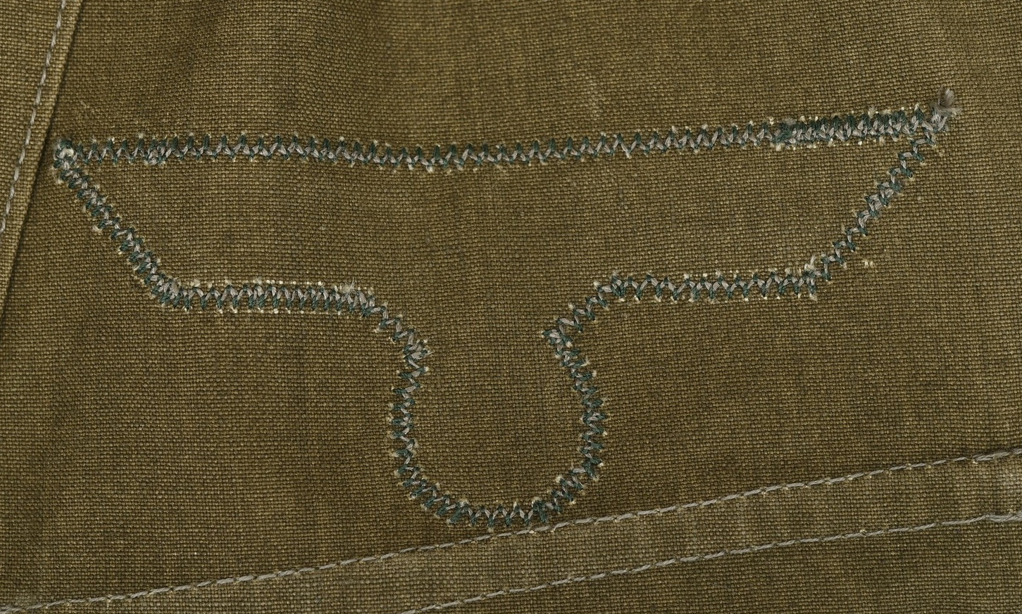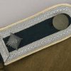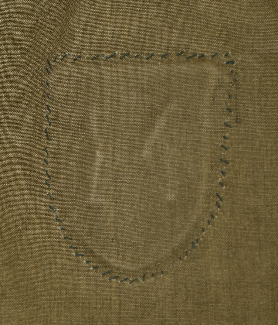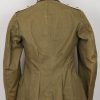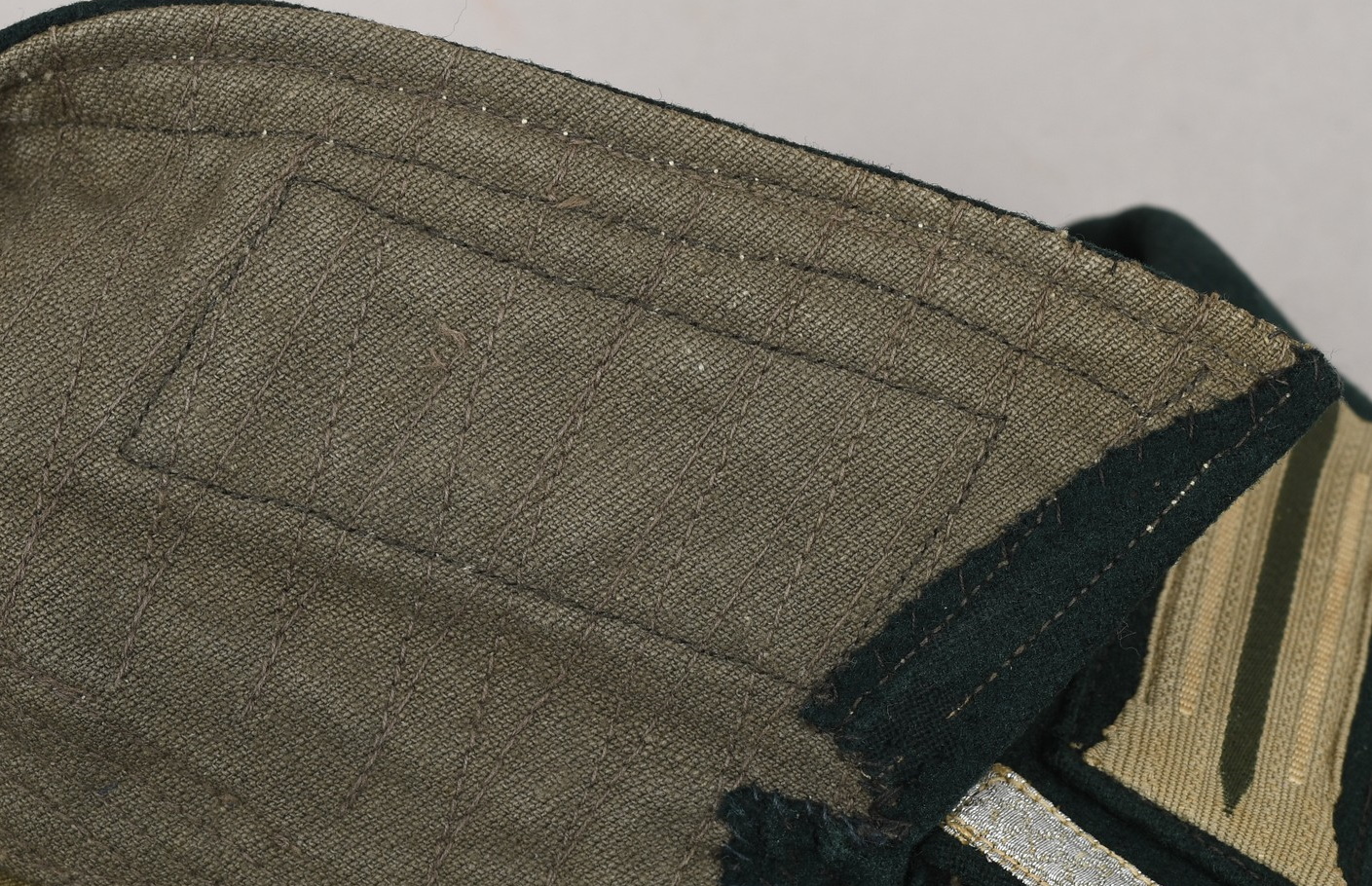 M36 style, light weight, cotton construction south front field tunic. The tunic has a six button front closure, a bottle green collar a singel metal hook and eye positioned at the forward neckline. The tunic has two, pleated, patch, breast pockets and two, pleated hip pockets. All pockets with scalloped edged, button down flaps. The right breast has a EM/NCO’s national eagle in grey cotton threads on a cut-out dark green rayon base. The eagle is machine sewn to the tunic. The tunic has early second pattern slip-on shoulder straps, dark green base with white wool piping, silver/aluminum nco tresse and a singel alloy metal rank pip pinned in place. Machine sewn to the collar is a pair of issue, Infantry em/nco’s collar tabs. To the left breast pocket is award loops sewn for two awards and above the pocket is a east front ribbon bar attached through retaining loops. The ribbon bar comes with the tunic. To the left upper sleeve is KRIM shield neatly hand sewn in place. To the right lower sleeve is a NCO radio operator trade patch netaly hand sewn in place. Interior is unlined. The tunic shows light signs of age and real use, all insignias match perfectly in condition and are original to the tunic. No holes, rips, mendings or larger staisns. The tunic comes with a protective inner collar.