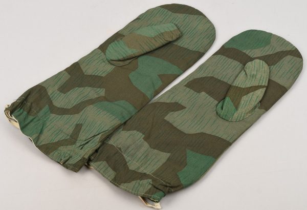 Matching pair of Heer / Luftwaffe splinter pattern camouflage reversible to white winter gloves. The set is in very good condition. Attachment string is complete and present. One of the gloves are clearly stamped with a RBNr stamp, see picture!.