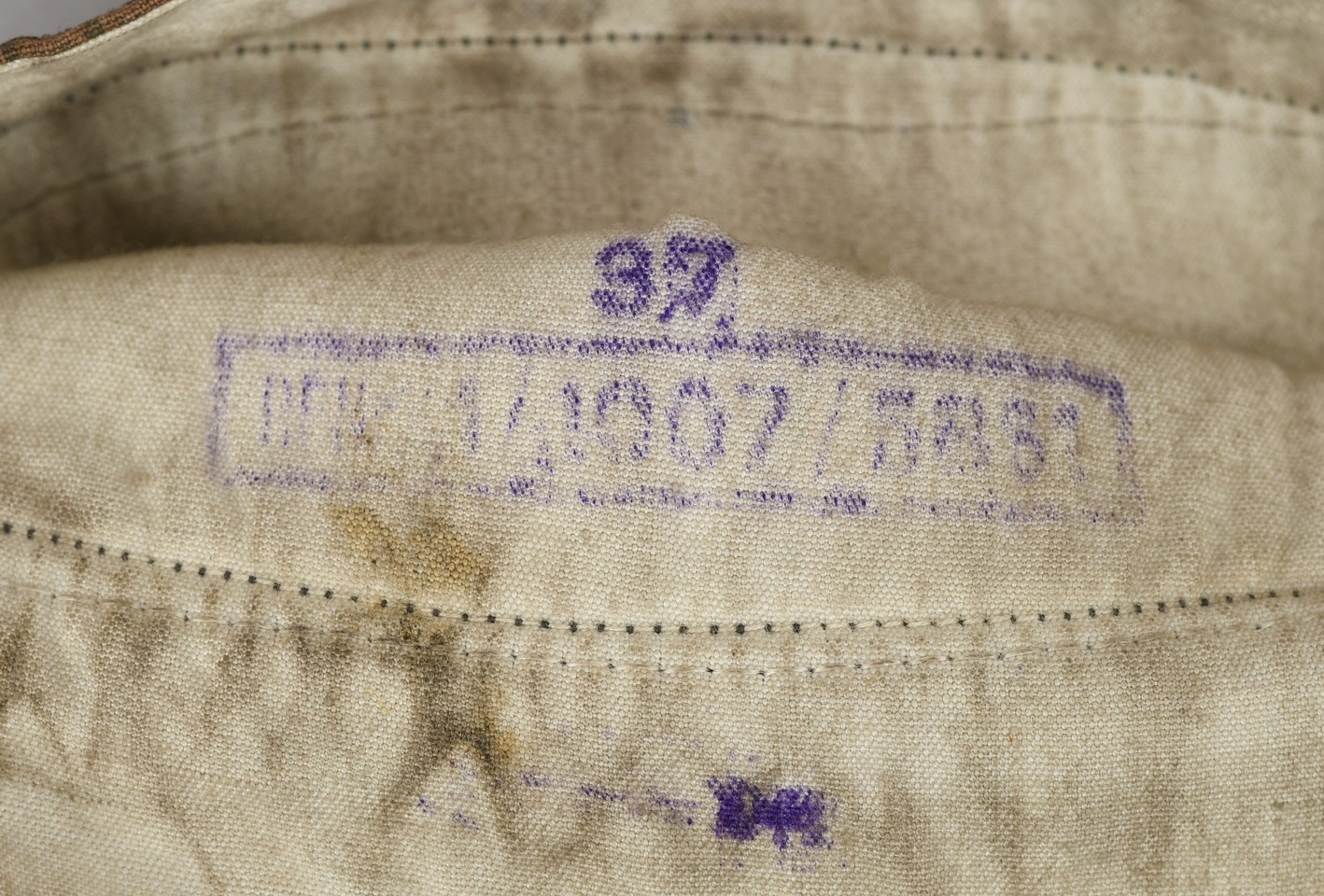 Standard issue, padded, water proofed, reversible winter mittens, featuring the “sumpftarn” camouflage to one side and white to the other side. The fully matching par is in good still used condition, drawstring missing. Inside is clearly marked with factory code (RBNr).