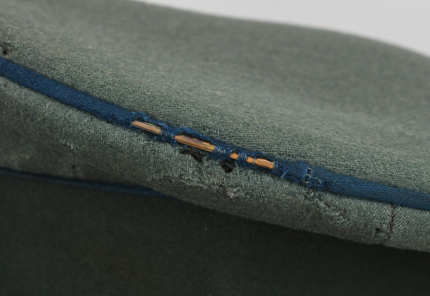 Cap shows clear signs of age and use. The crown hos only a couple of minor moth bites, left side shows some damage though, see pictures. Inside shows signs of a longer period of use with soiling from wear. The lining shows some fraying. Cap size is about 57 – 57,5.