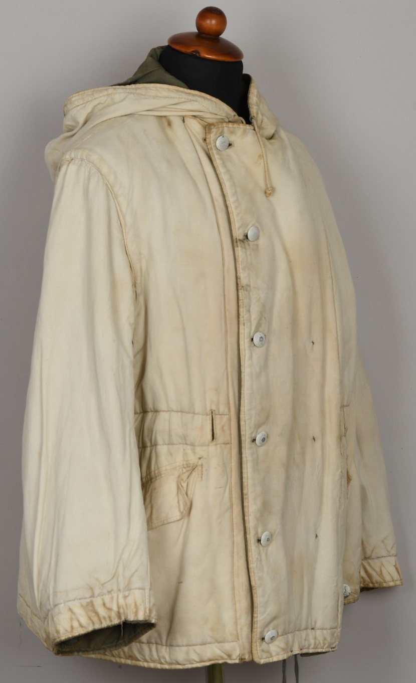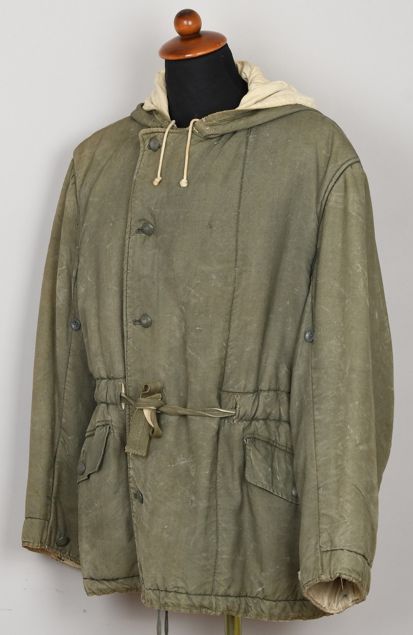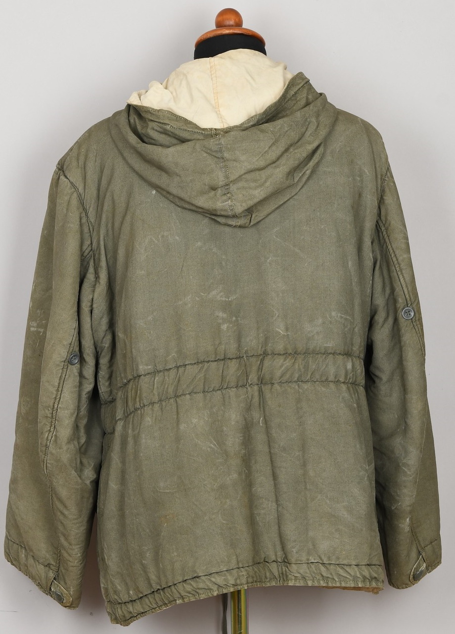 After the devastating winter of 1941-1942 on the Russian front the German army found that it was drastically under equipped with cold weather garments to withstand the severe cold and a wide variety of improvised garments including a broad assortment of donated civilian garments were utilized as a temporary solution. To rectify the situation the OKH, Oberkommando des Heeres, began testing heavier winter clothing in the spring of 1942 to develop suitable garments for the Russian front. In April 1942 Hitler approved the chosen designs and the first models were issued in the autumn of that year, in the reversible blue/mouse grey/white colorations, which was modified to camouflage pattern/white combinations in 1943.