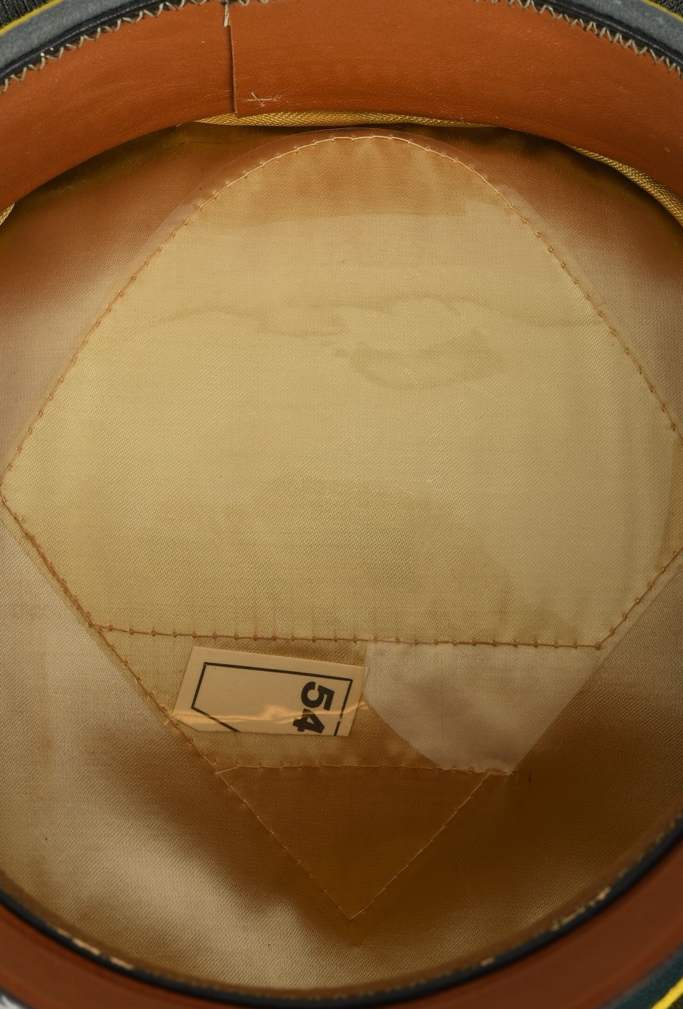 The cap is in VERY good condition, with no stains, moth damage or mendings. The exposed cloth parts shows light color fading and there is minor chafe wear to the sweatband. With other words, the cap is in close to mint condition.