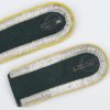 Early second pattern dark-green badge cloth construction, slip on shoulder straps with diamond patterned NCO’s tress and lemon yellow wool branch of service piping to the edges. The size of the two straps is identical but the Construction is not. With other Words, not a fully matching pair. But 100% used as a pair with perfectly matching signs of age and use.