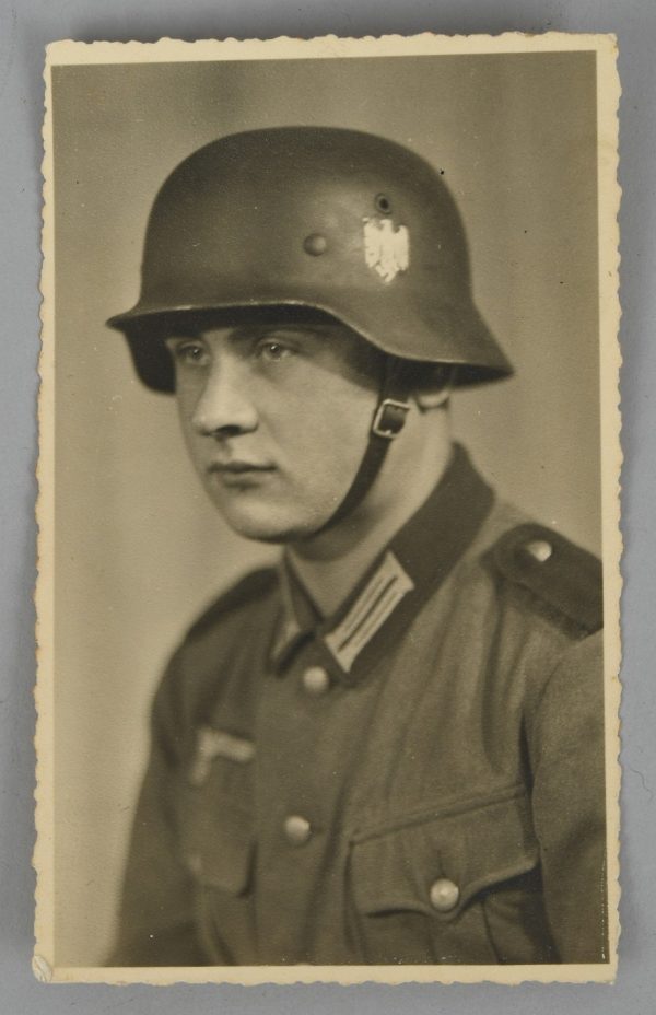 Home > Shop > Product More images Item Id: MP24039 Heer Soldier Portrait Photo €6.00 Large and clear studio photo, postcard size. Picturing a Heer soldier in combat uniform and steel helmet. Hand written text to the reverse. The picture shows some age toning to the reverse. Nice photo!! Related products Large Wartime Framed Studio Photo Picturing a Panzer Unteroffizier €150.00 Buy now Iron Cross 1'st Class Proposal Document for a KIA Leutnant 11-11-1944, Italian Front €250.00 Buy now Heer Panzer Officer With Panzer Beret Photo €25.00 Buy now Holder Sturmgeschütz-Abteilung 184 €30.00 Buy now