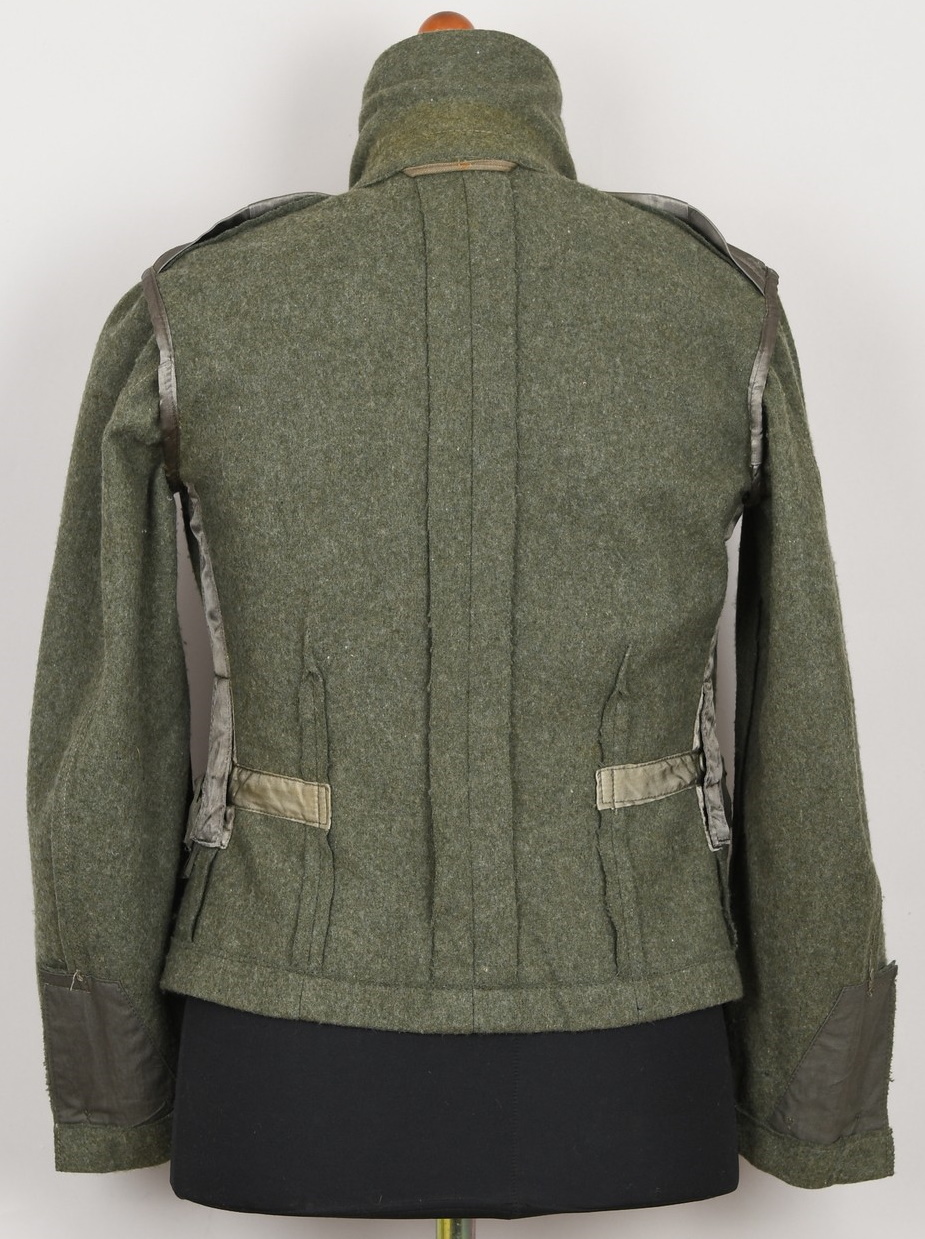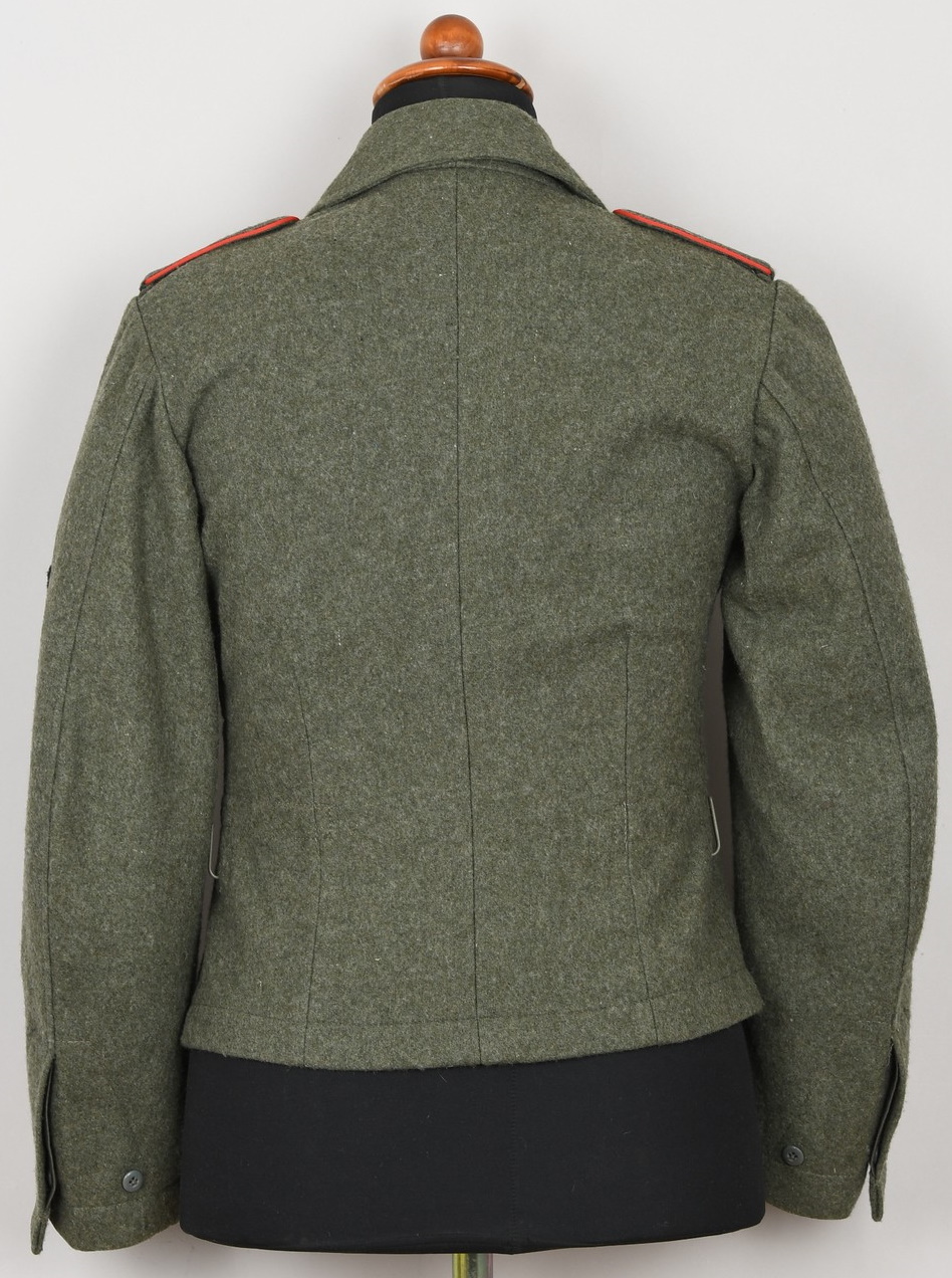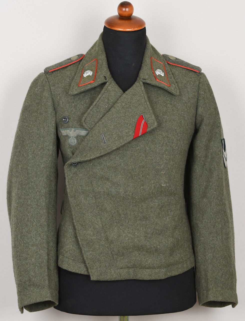 The black panzer wrap uniform had proven practical in the confines of tanks, but it was determined that the color was too conspicuous for use while performing the close support role as the assault gunners were quite often required to leave their vehicles for observation within close range and view of the enemy. This consideration led to the introduction of the field-grey Sturmartillerie uniform on May 29th 1940 with the same design and cut of the black panzer wrap uniform.