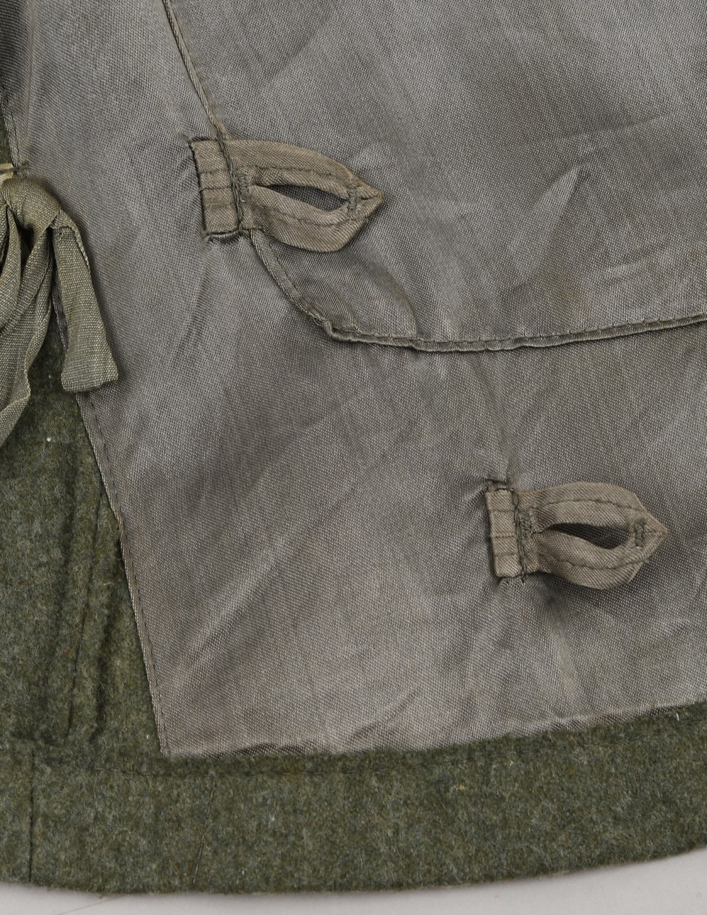 The tunic is in very good condition, no holes or mendings. All original buttons still in place. There is light signs of age and use with some minor stains. This wrapper was most likely used as a “walking out” example.