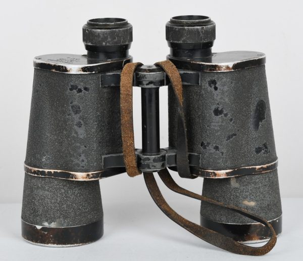 Nice original wartime binoculars marked blc indicating production by “Carl Zeiss, Jena”. These binoculars where favored by combat officers, as they gave a long and clear range. The binoculars are in well used but still working condition with pretty clear optics and comes complete with original leather carrying strap.