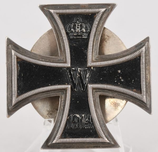 1914 pattern die struck, three piece, iron and silver construction cross with a single piece iron core and a two piece silver frame. Reverse complete with original screw back device. Reverse is marked “835” which is the silver content. The cross is in very good condition with 99,9% of the black paint still intact to the core.