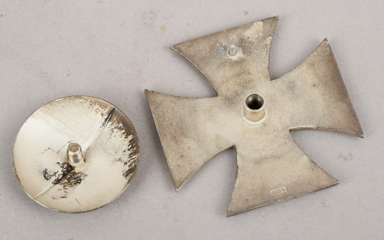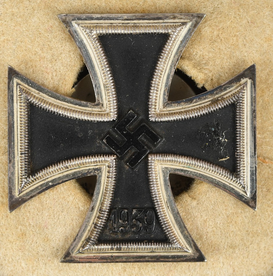 1939 pattern, die struck, three piece, Iron and silver alloy construction Pattée style cross with a single piece iron core and a two piece silver alloy frame. The reverse with a screw-back and a pin on the twelve o’clock arm and marked with manufacturer’s LDO code, “L54”, indicating manufacture by “Schauerte & Höhfeld of Lüdenscheid”. The cross is in good condition with light signs of age.