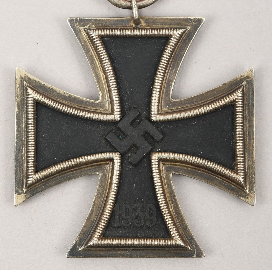 Adolf Hitler restored the Iron Cross in 1939 as a German decoration / bravery award and continued the tradition of issuing it in various classes. The Iron Cross was awarded for bravery in battle as well as other military contributions in a battlefield environment.