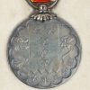 A Japanese commemorative medal and ribbon in it’s original case. To the obverse center of the diameter silver medal is a Imperial Chrysanthemum, within the opened curtains of the Imperial throne, to either side of which are stylized clouds, and beneath which are the kanji characters for “Banzai!” (which usually translates to “May the Emperor Live Ten Thousand Years”). To its reverse is a banner flanked by stylized clouds, all encircled by the outline of an Imperial Chrysanthemum. To the top of the banner are embossed the kanji characters for “Grand Enthronement,” underneath of which are three characters translating to “Commemorative Medal.” Arching underneath the banner, from right to left, are the characters for “Showa era 3rd Year 11th Month” (November, 1928). A clasp is to the top of the medal, with a perforated ball to its top, through which passes the ribbon’s suspension ring. Fed unto the ring is a watered silk ribbon, with five stripes to it, in purple, white, red, yellow and green. An alloy hook is to its top, which folds down and mates with an eye sewn to its reverse. Comes complete with its original presentation case. Both medal and case is in good condition with signs of age.
