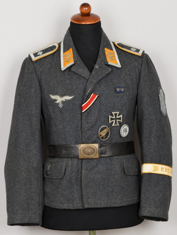 Luftwaffe Flight/Paratrooper Feldwebel's Fliegerbluse with NARVIK Shield and Kreta Cuff Band