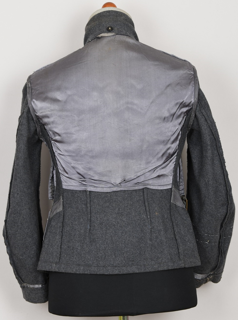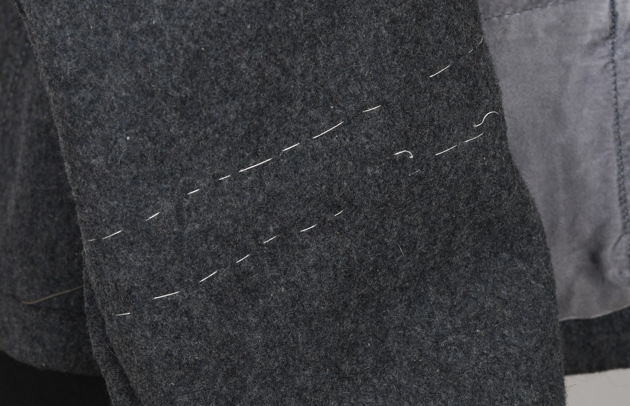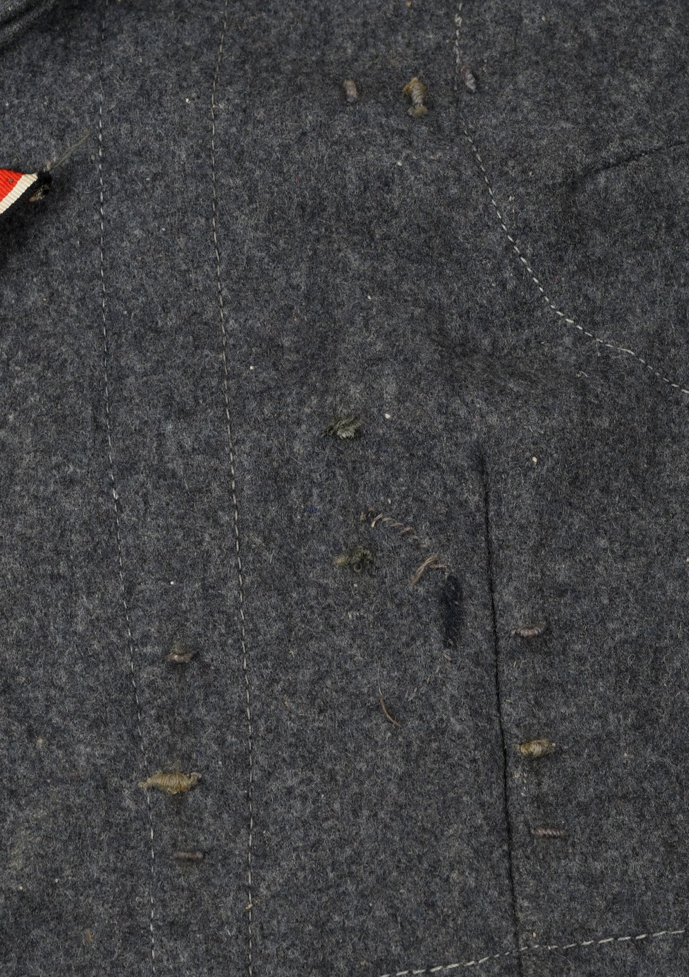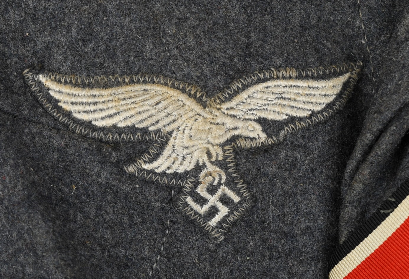 The tunic shows signs of age and real use. The KRETA cuff band, NARVIK campaign shield and Iron Cross ribbon has all been attached in a rather crude manner. The sewing artist was not one with great skills, most likely the soldier himself. Award loops was sewn with different threads and there is traces left from a flight or paratrooper cloth award. All looks war-time made.
