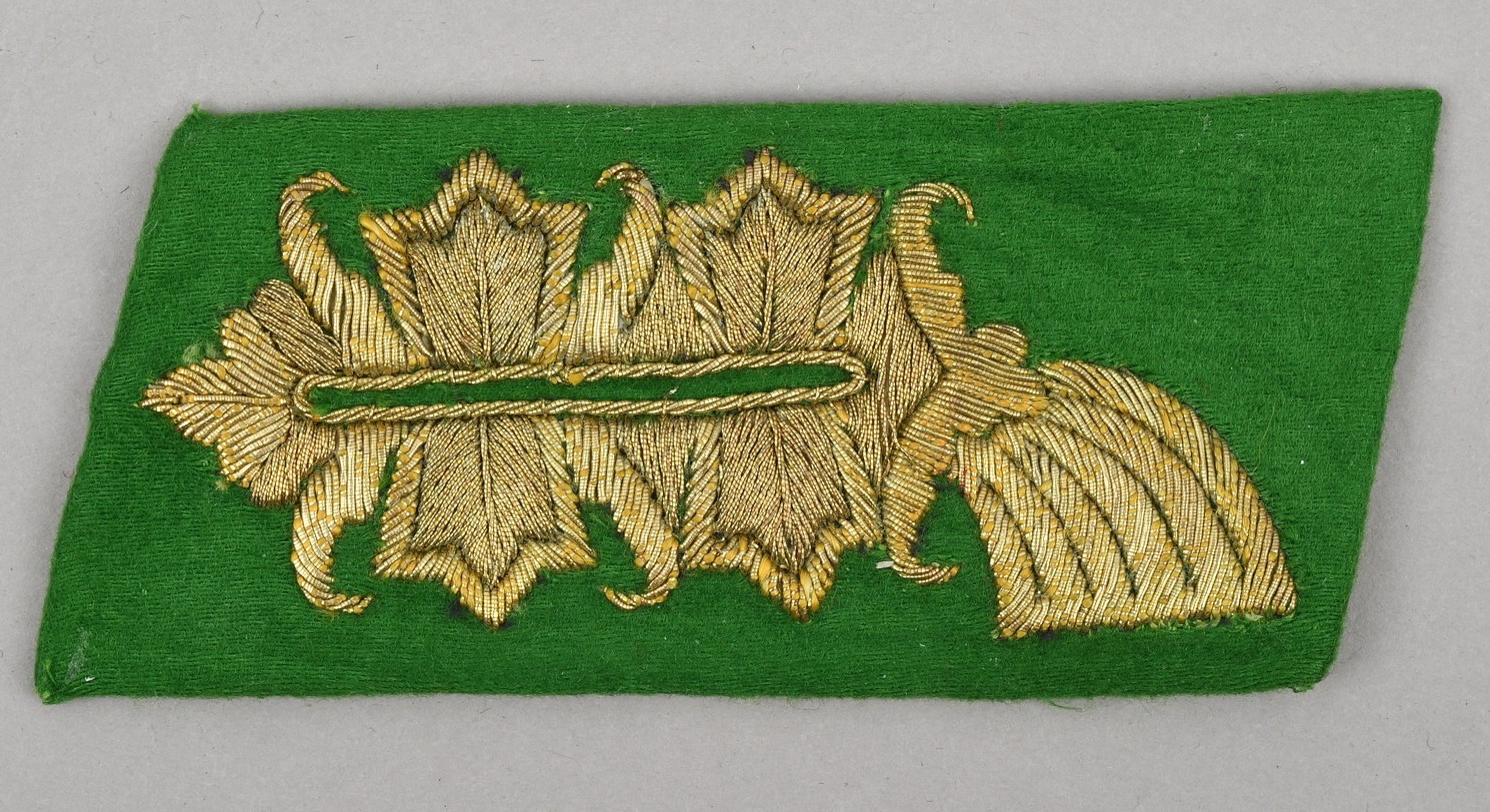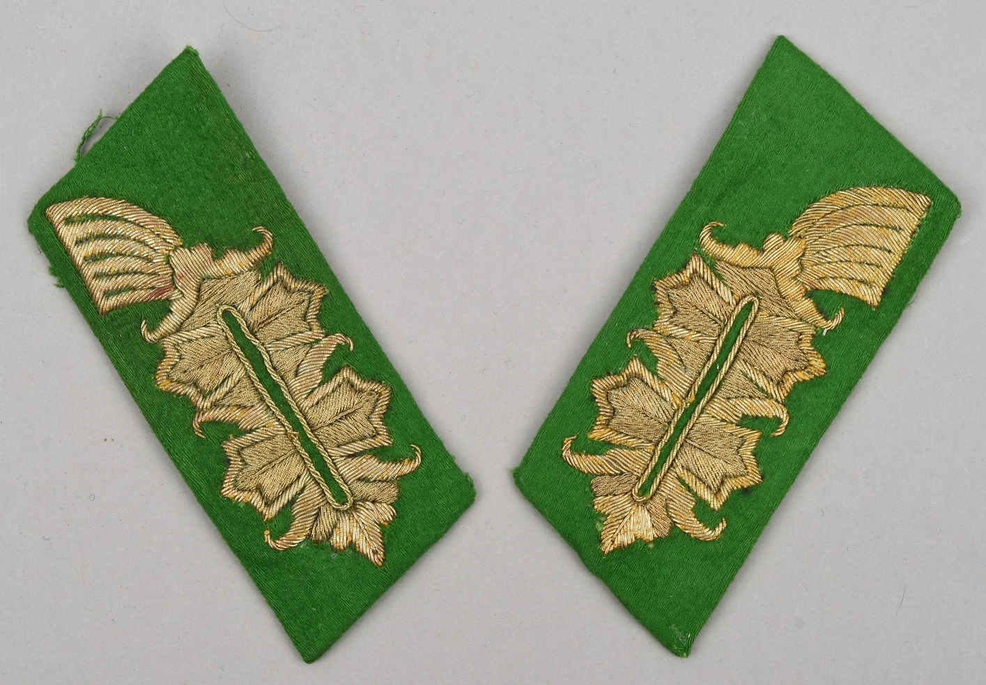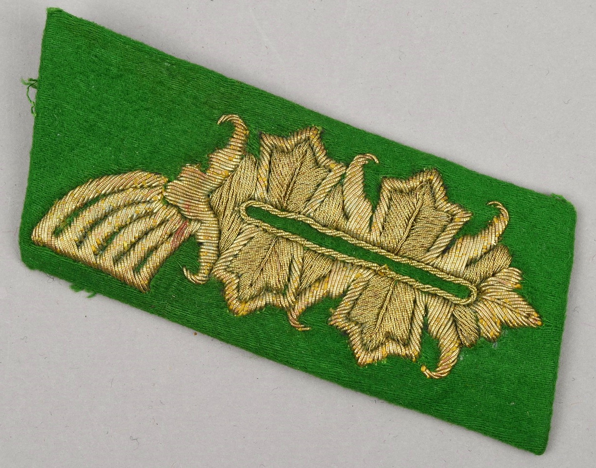Home > Shop > Product More images Item Id: IP25007 Police Generals Collar Tabs €495.00 Constructed of smooth green wool with hand embroidered insignia in fine gold bullion wire. All mounted on buckram backings. The matching pair shows signs of age and real use. Scarce matching pair!! Related products SD SS-Hauptscharführer's Shoulder Boards €265.00 Sold New Police NCO's Second Pattern M43 / Overseas Cap Insignia €60.00 Buy now New Waffen-SS Latvian Volounteer Arm Shield €475.00 Buy now New Iron Cross Second Class 1939 €170.00 Sold New
