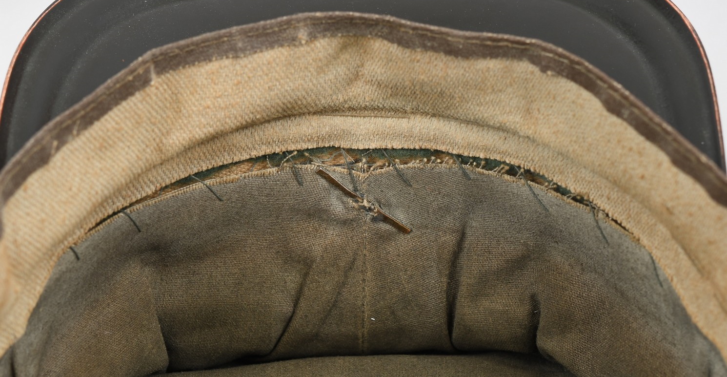The cap is in a well preserved, but still well used condition. Outside shows no rips, mendings, moth holes or stains. Just some wear to highlighted positions. Inside shows clear signs of use with sweat stains and wear marks from a longer period of use.
