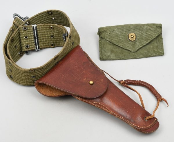 U.S. WWII M1936 Webbed Belt, Colt Holster and Field Dressing Pouch