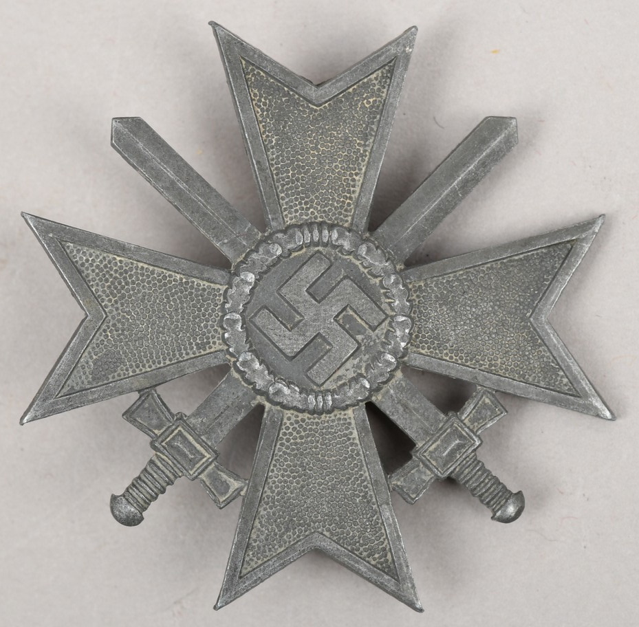 The War Merit Cross was instituted by Adolf Hitler on October 18th 1939 in two classes with both classes issued, with and without swords, for award to military personnel and civilians, including females and foreigners, for exemplary service and/or bravery in Germany’s war effort, in a non-combatant role. The addition of swords to the award signified bravery while awards without swords were bestowed for service.