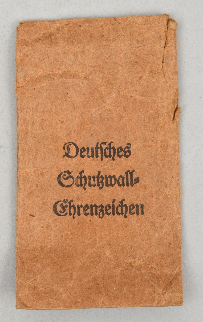 The West Wall Medal / German Defence Medal was instituted on 2nd August 1939 and was given to those who designed and built the fortifications on Germany’s western borders, known as the West Wall or, in English, the Siegfried Line, and to the troops who served there prior to May 1940. In 1944, as Germany was expecting the arrival of the allied invasion, it was again awarded to those who took part in the fortification of the western borders. In all 622,064 medals were awarded by the end of the war.