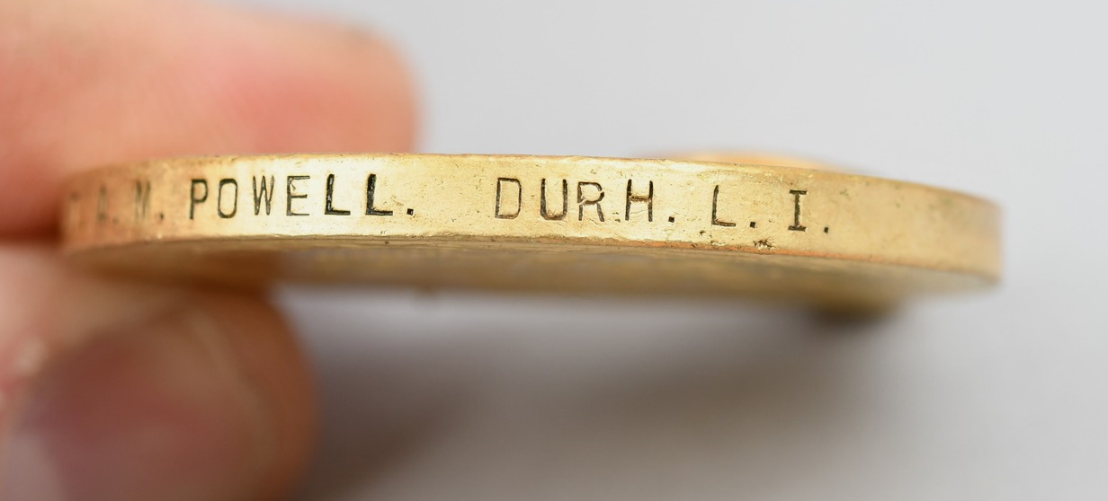 Home > Shop > Product More images Item Id: OM24017 WWI British Victory Medal Awarded to Sjt A.M Powell Durham Light Infantry £42.52 Victory medal awarded to Sjt. A.M. Powell, serving in Durham Light Infantry regiment. The medal shows light signs of age and wear. Complete with medal ring and ribbon. Nice exampel!! Optionally order a “Certificate of Authenticity”. The “Certificate of Authenticity” will be shipped separately to your order free of any charge. Certificate of Authenticity (+£25.51) WWI British Victory Medal Awarded to Sjt A.M Powell Durham Light Infantry quantity Add to cart Related products US WWII Good Conduct Medal And Miniature £29.76 Buy now WWI Named Mercantile Marine War Medal £38.26 Buy now British WWI Distinguished Conduct In The Field Medal £676.00 Buy now US WW2 Hand Grenade Pouch £42.52 Sold